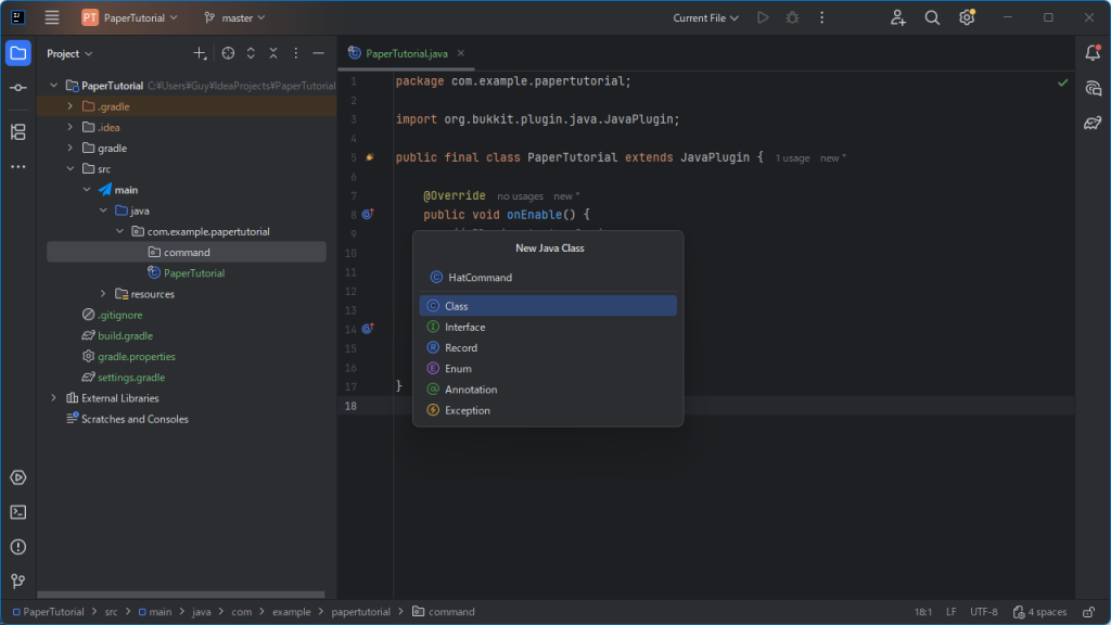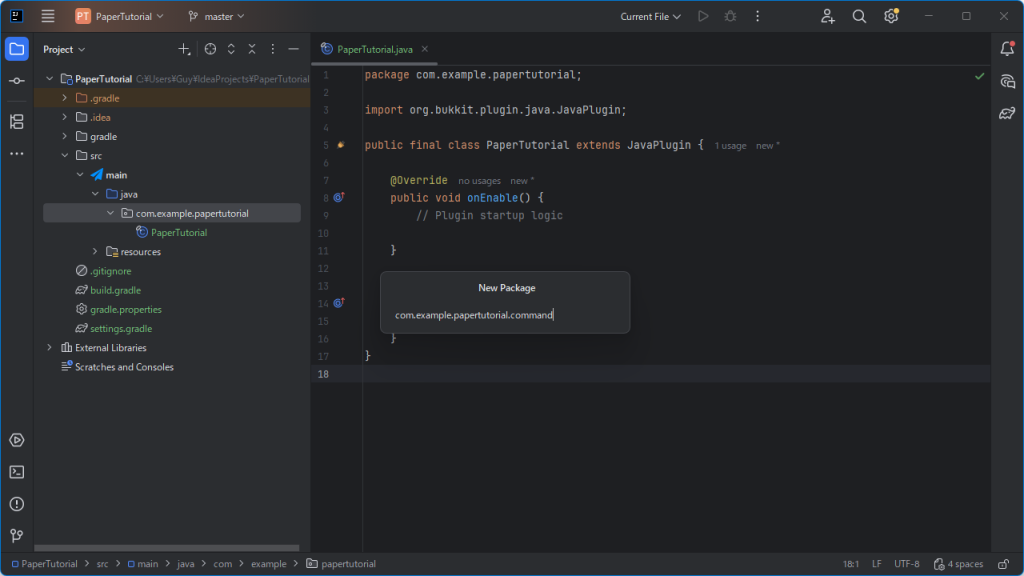 [XX:XX:XX INFO]: [PaperTutorial] Enabling PaperTutorial v1.0‑SNAPSHOT